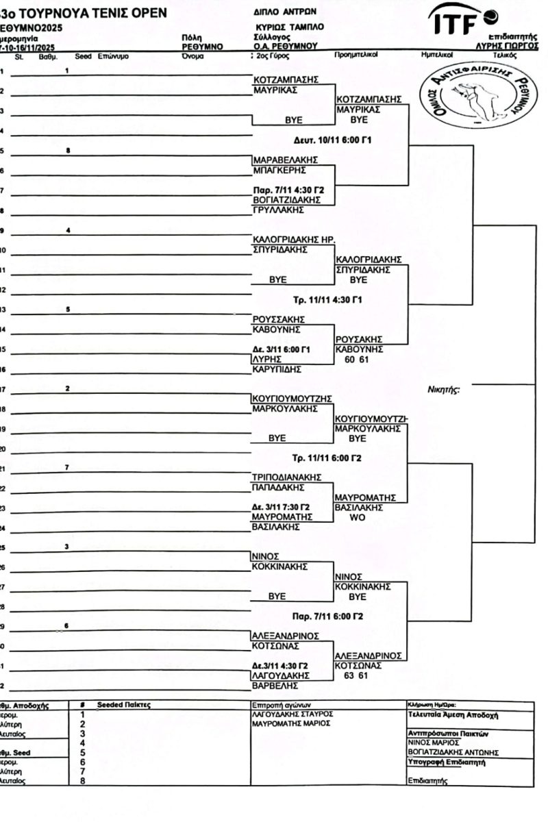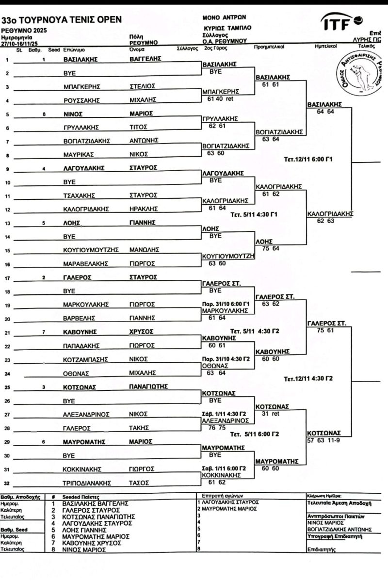 ΔΙΠΛΟ ΑΝΔΡΩΝ4 Νοεμβρίου 202518 Δεκεμβρίου 2025 7 Νοεμβρίου 2025 Categories Gallery Φωτογραφιών & Βίντεο Ανακοινώσεις Ομίλου Αποτελεσματα Αγωνων ΑΡΧΙΚΗ ΣΕΛΙΔΑ Διαφημίσεις Ενωσιακά Τουρνουά Ομιλος Προγράμματα Προκυρήξεις Αγώνων Σχετικά με το Τένις Τα Νέα του Τένις Τουρνουά Open Τουρνουά Βετεράνων Χρήσιμες Συμβουλές Χωρίς κατηγορία Tags Share Related posts28 Ιανουαρίου 2026ΠΡΟΣΚΛΗΣΗ ΚΟΠΗΣ ΠΡΩΤΟΧΡΟΝΙΑΤΙΚΗΣ ΠΙΤΑΣRead more18 Δεκεμβρίου 2025Read more4 Νοεμβρίου 2025ΔΙΠΛΟ ΑΝΔΡΩΝRead more